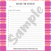 This student journal is designed to help girls chronicle their adventures and lessons during a three day girls' retreat. They will have the opportunity to write fun memories, take notes on each session (one on day one, two on day 2, and one on day 3), and have time for reflection on each session. There's also an opportunity for reflection before and after the event and space for additional notes. With this journal, girls will be able to have an experience at their retreat they will never forget.